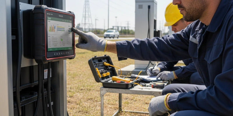 某客户在充电站安装800尼特显示屏。参数看似满足遮蔽区域需求,但高峰时段用户无法读取屏幕。